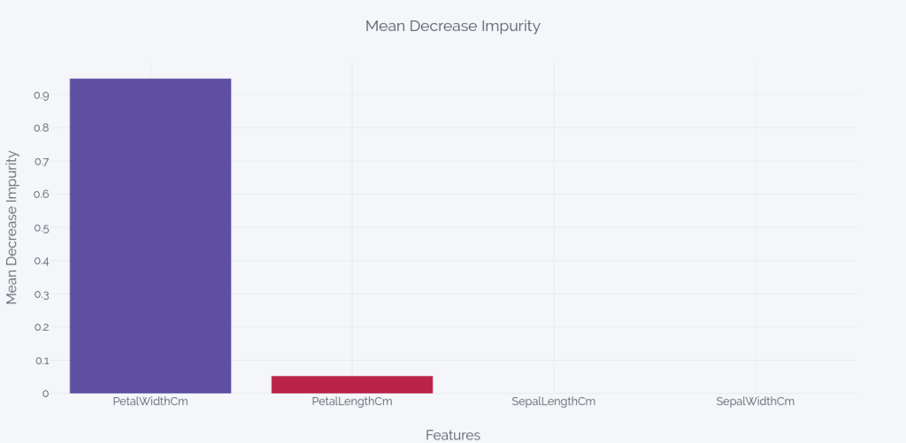 We dropped the ‘Id’ column, encoded the Species target to make it the target, and trained a Decision Tree Classifier on it.