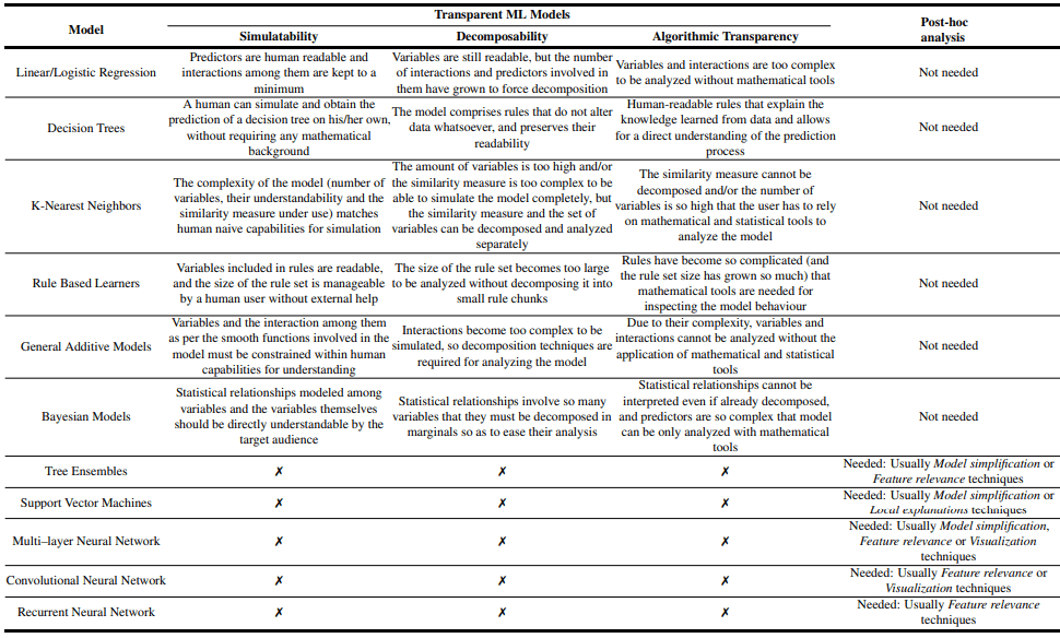 Arrieta, Alejandro Barredo et al. have summarised the ML models and categorised them in a nice table.