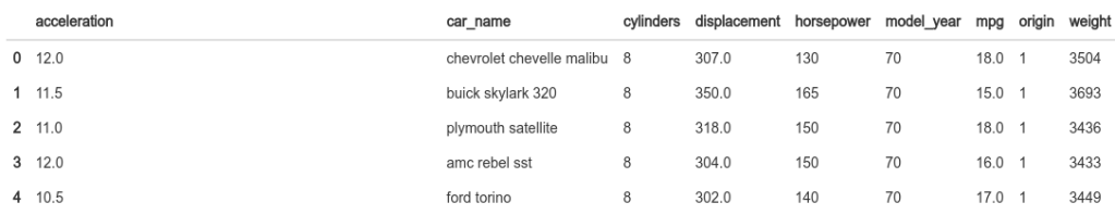 Since Logistic Regression is also a linear regression in some way, we just focus on Linear Regression. Let’s take a small data set (auto-mpg) to investigate the model. The data concerns city-cycle fuel consumption in miles per gallon along with different attributes of the car like: