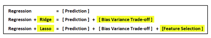 In Ridge Regression we added the sum of all squared coefficients to the cost function and in Lasso Regression we added the sum of absolute coefficients. In addition to those, we also introduced a parameter which is a hyperparameter we can tune to arrive at the optimum model complexity. And by virtue of the mathematical properties of L1 and L2 regularization, the effect on the coefficients are slightly different.
