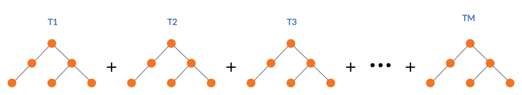 RGF takes a slightly different route. For each step change in the structure of the tree, it evaluates the possibility of growing a new leaf in an existing tree vs starting a new tree with the help of the loss function, and then takes the greedy approach of taking the route with least loss. So in the diagram above, we can choose to grow leaves in T1, T2, or T3, or we can start a new tree T4 depending on which one gives you the most reduction in loss.