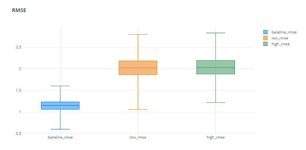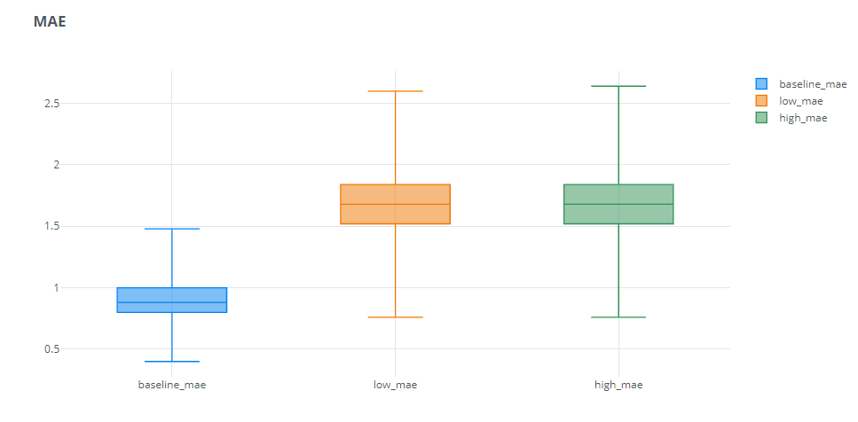 In addition to the above experiments, we had also ran an experiment to check the impact of outliers(single predictions which are wildly off) on the aggregate metrics.