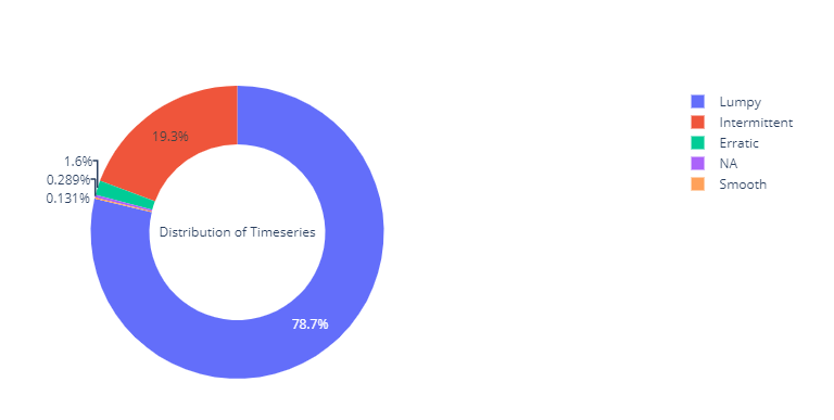We can see that almost 98% of the timeseries in the dataset are either Intermittent or Lumpy, which is perfect for our use case.