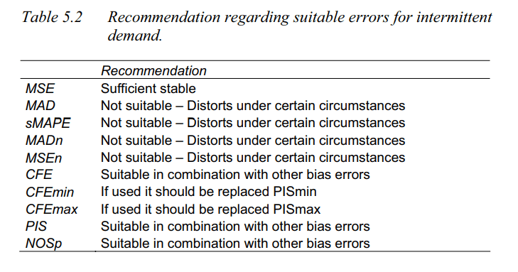 - Martin et al. 2013, A New Metric for Lumpy and Intermittent Demand Forecasts: Stock-keeping-oriented Prediction Error Costs