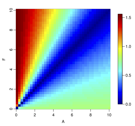 So, if we consider a triangle, with adjacent and opposite sides equal to A and |A-F| respectively, the Absolute Percent Error is nothing by the slope of the hypotenuse.