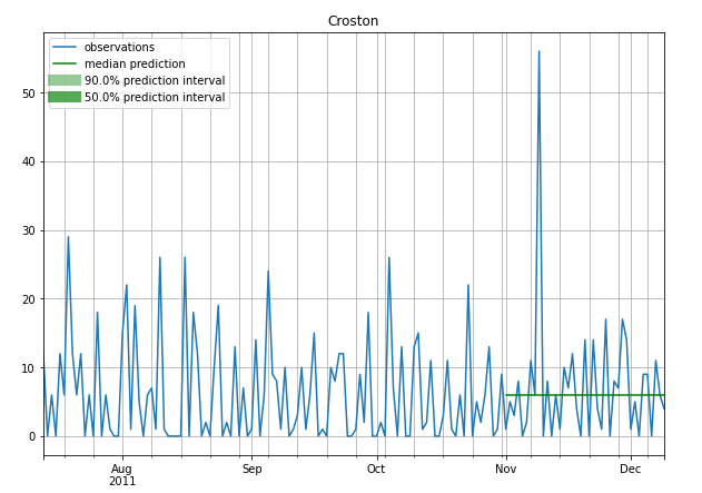 evaluator = IntermittentEvaluator(quantiles=[0.25,0.5,0.75], median=True, calculate_spec=False, round_integer=True)